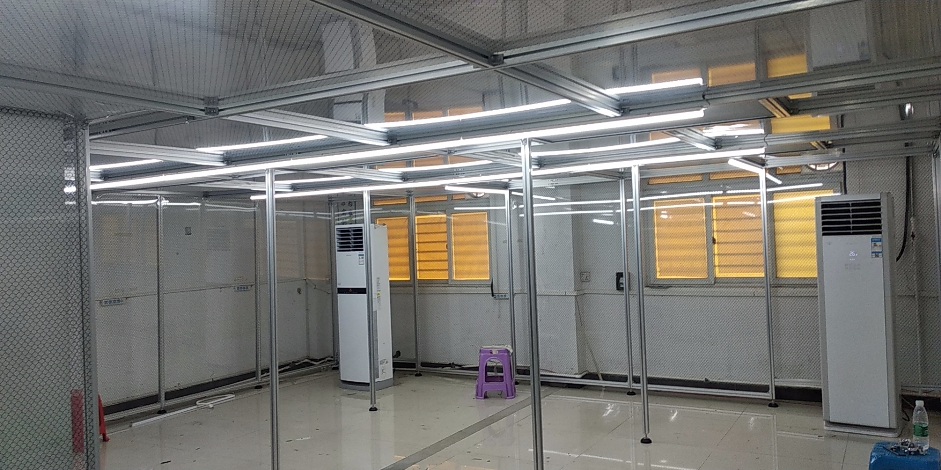 潔凈棚是一種投資少而凈化級(jí)別高,移動(dòng)比較方便的簡(jiǎn)易凈化裝置。將潔凈層流罩FFU放置在由專業(yè)凈化鋁型材組裝而成的框架上。頂部由盲板鋪蓋,密縫嚴(yán)密,四周用防靜電簾/防靜電有機(jī)玻璃圍縫使棚區(qū)內(nèi)潔凈度達(dá)到100-10000級(jí)。